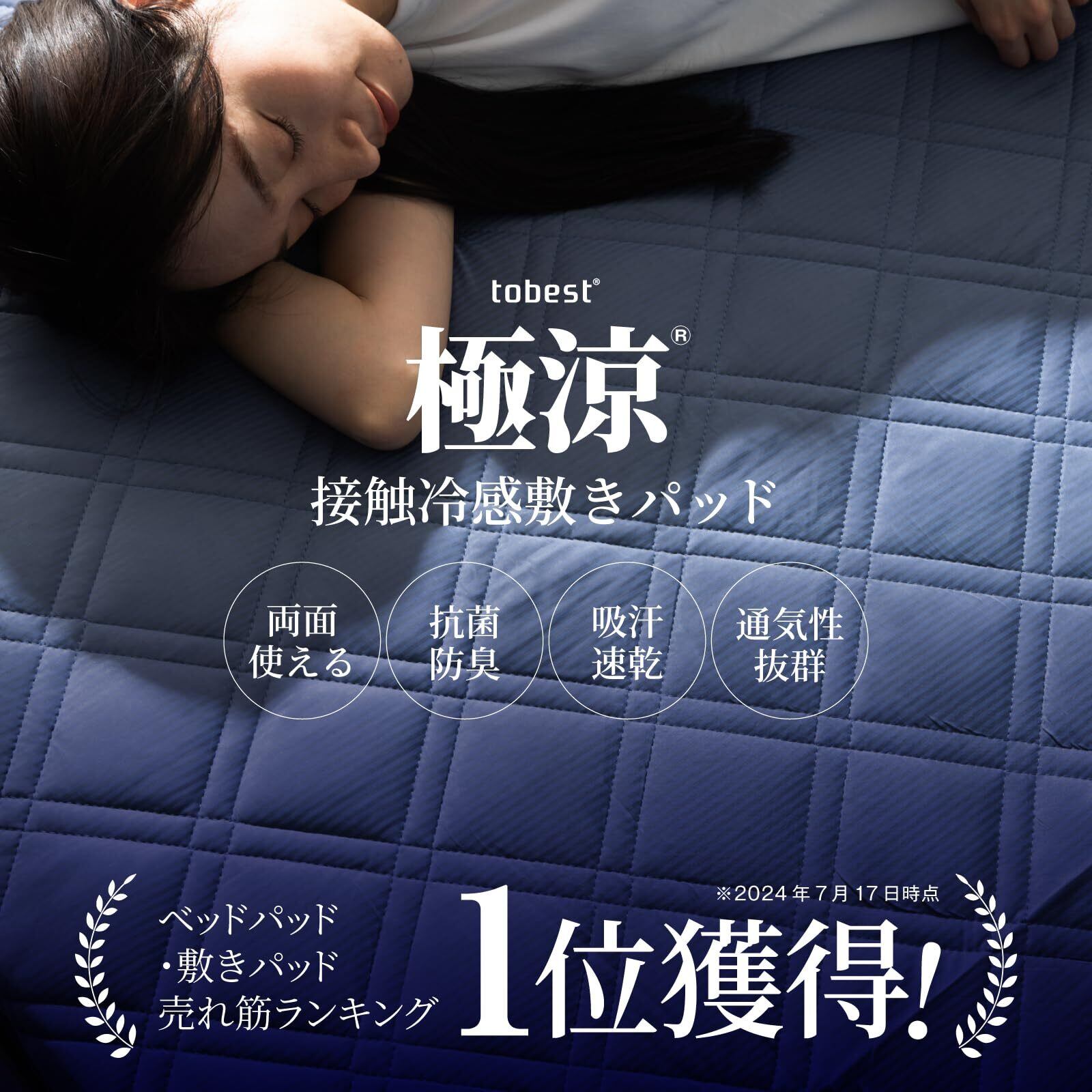 tobest 極涼 敷きパッド シングル リバーシブル 接触冷感 Q-MAX0.542 ひんやり 抗菌 涼感 クール 吸水速乾 丸洗い ブルー 100x205cm