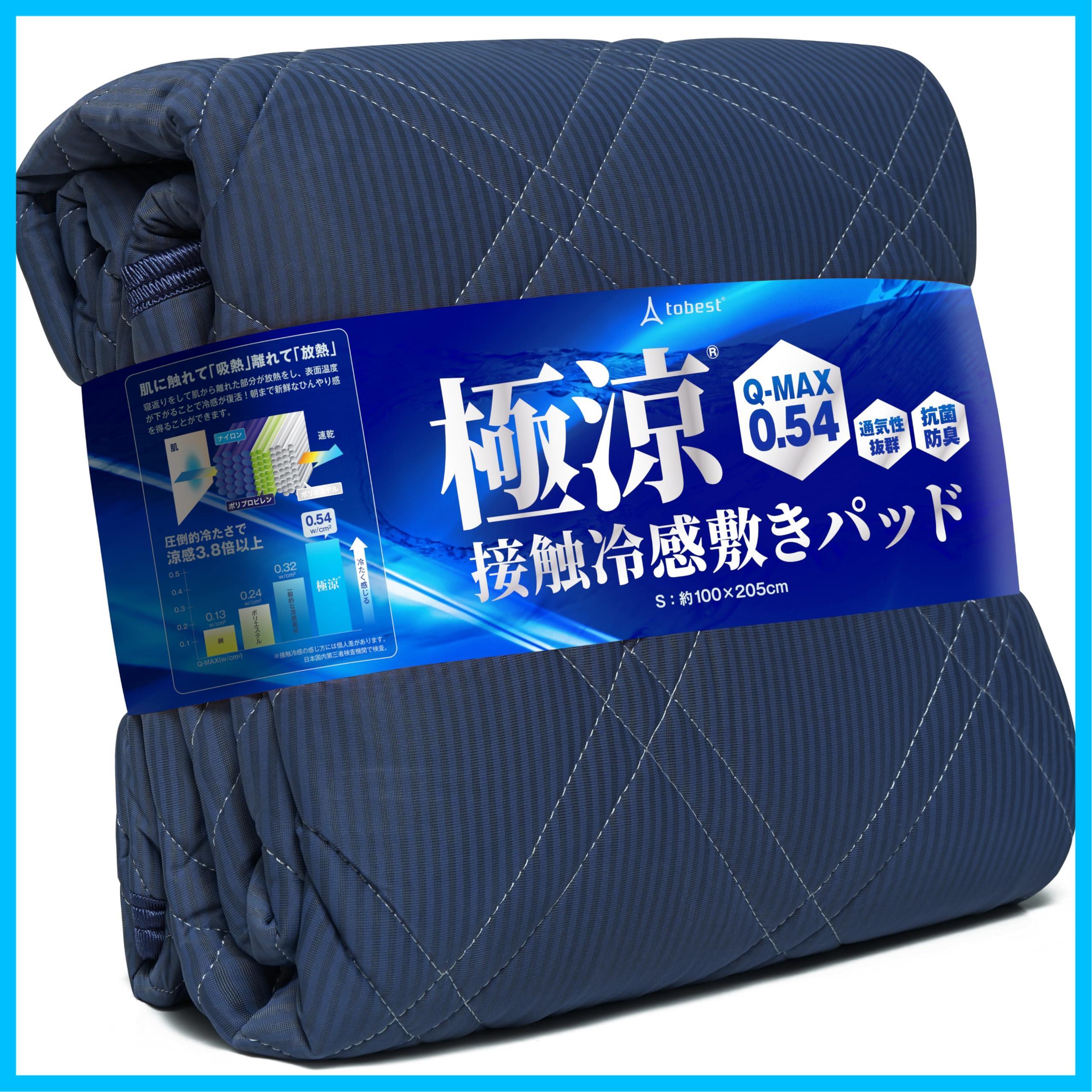 【在庫処分】tobest 極涼 敷きパッド シングル リバーシブル 接触冷感 Q-MAX0.542 ひんやり 抗菌 涼感 クール 吸水速乾 丸洗い ブルー 100x205cm