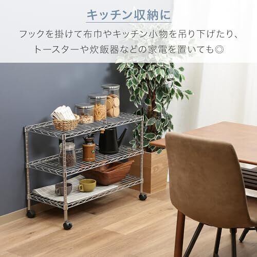 不二貿易 テレビ台 ローボード 3段 幅75×奥行35×高さ58m シルバー キャスター付き メタルラック 組立商品 91784