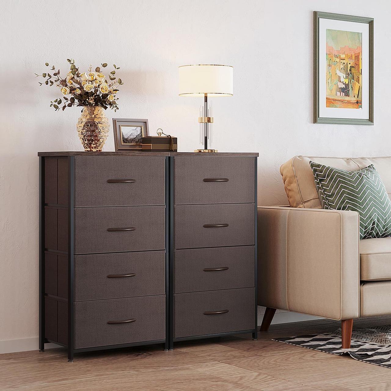 KKL チェスト タンス 衣類収納 収納ケース 引き出し リビング収納 布製 引き出し 衣装ケース 箪笥 転倒防止 低ホルム 安定感 4段 【幅40×奥行30×高さ80cm】 ダークブラウン