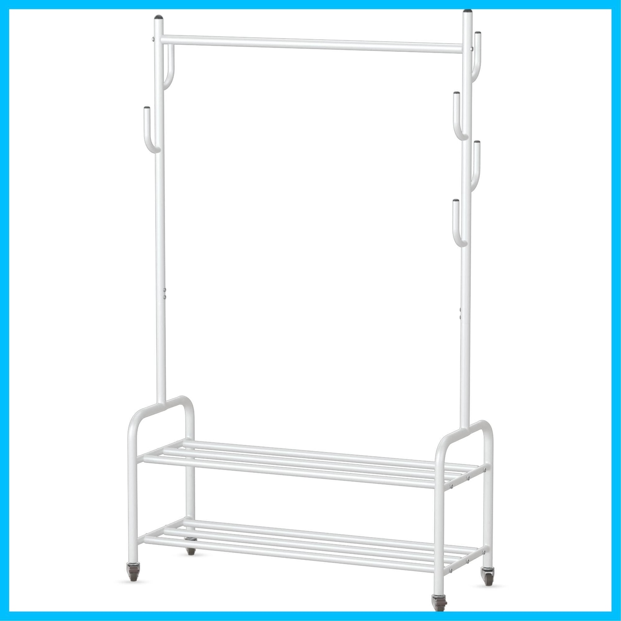 【在庫セール】ハンガーラック 多機能収納 おしゃれ 洋服ラック 衣類収納 頑丈 防サビ キャスター付き 洋服掛け (ホワイト, 2段)