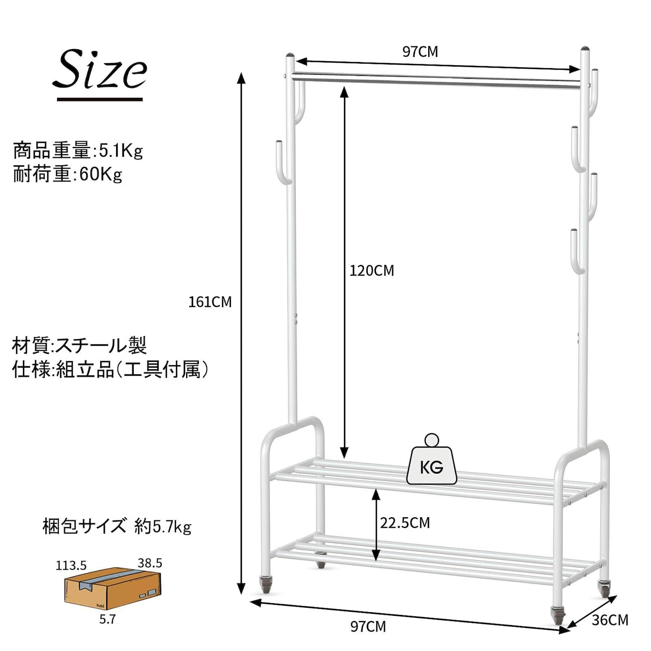 【商品サイズ】:幅97×奥行36×高さ170cm 耐荷重60KG 素材:高品質スチール製。冬物を15枚、夏物を20枚掛けることができます。