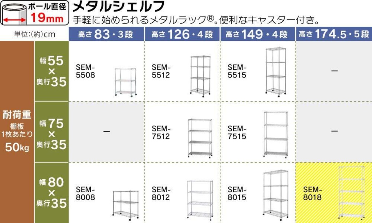 【在庫セール】アイリスオーヤマ(IRIS OHYAMA) メタルラック本体 5段 キャスター付き 防サビ加工 ポール径19mm 幅80×奥行35×高さ174.5cm メタルシェルフ スチールラック サビに強い シルバー SEM-8018