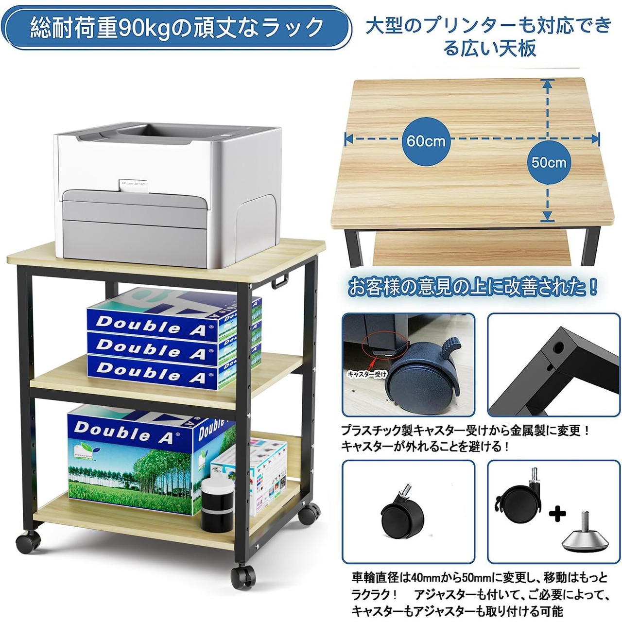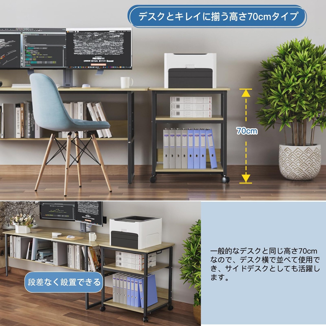 プリンター 台 キャスター付き 幅60 奥行50cm 高さ70cm コピー機台 サイド デスク ワゴン プリンター ラック デスク下 収納 棚 木製 袖机 スリム