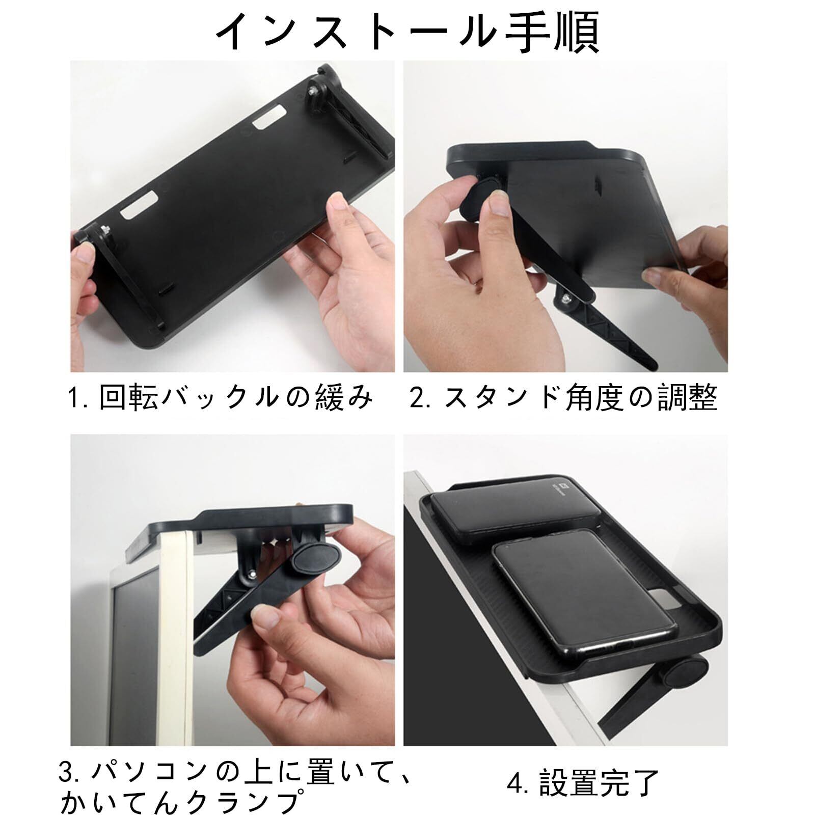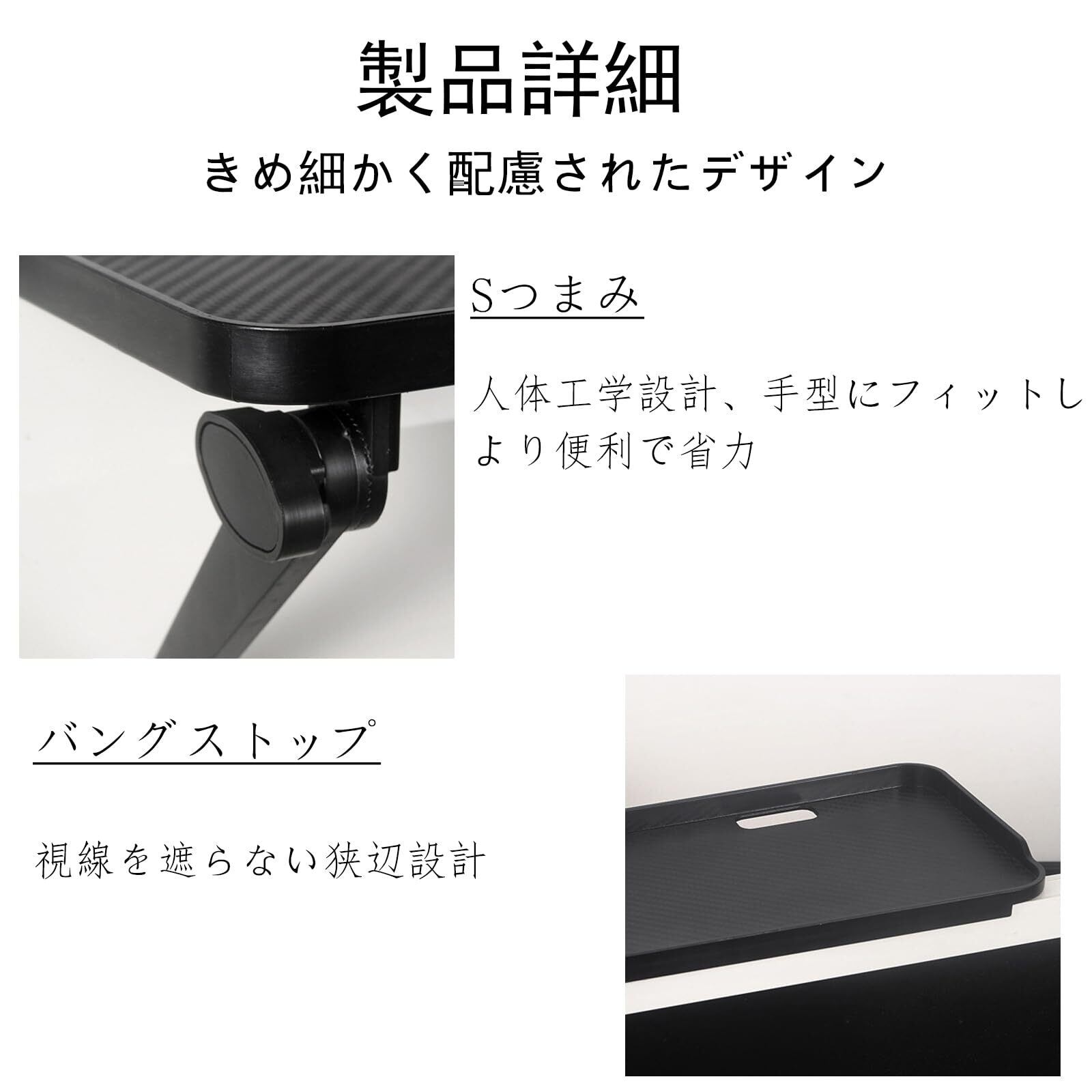 取り付け簡単:どなたでも簡単に設置出来ます。ボードと支える部分を接合するところにあるハンドルを折って、ディスプレの形状によって適当な角度を調整して、ハンドルを折り戻して固定完了です。