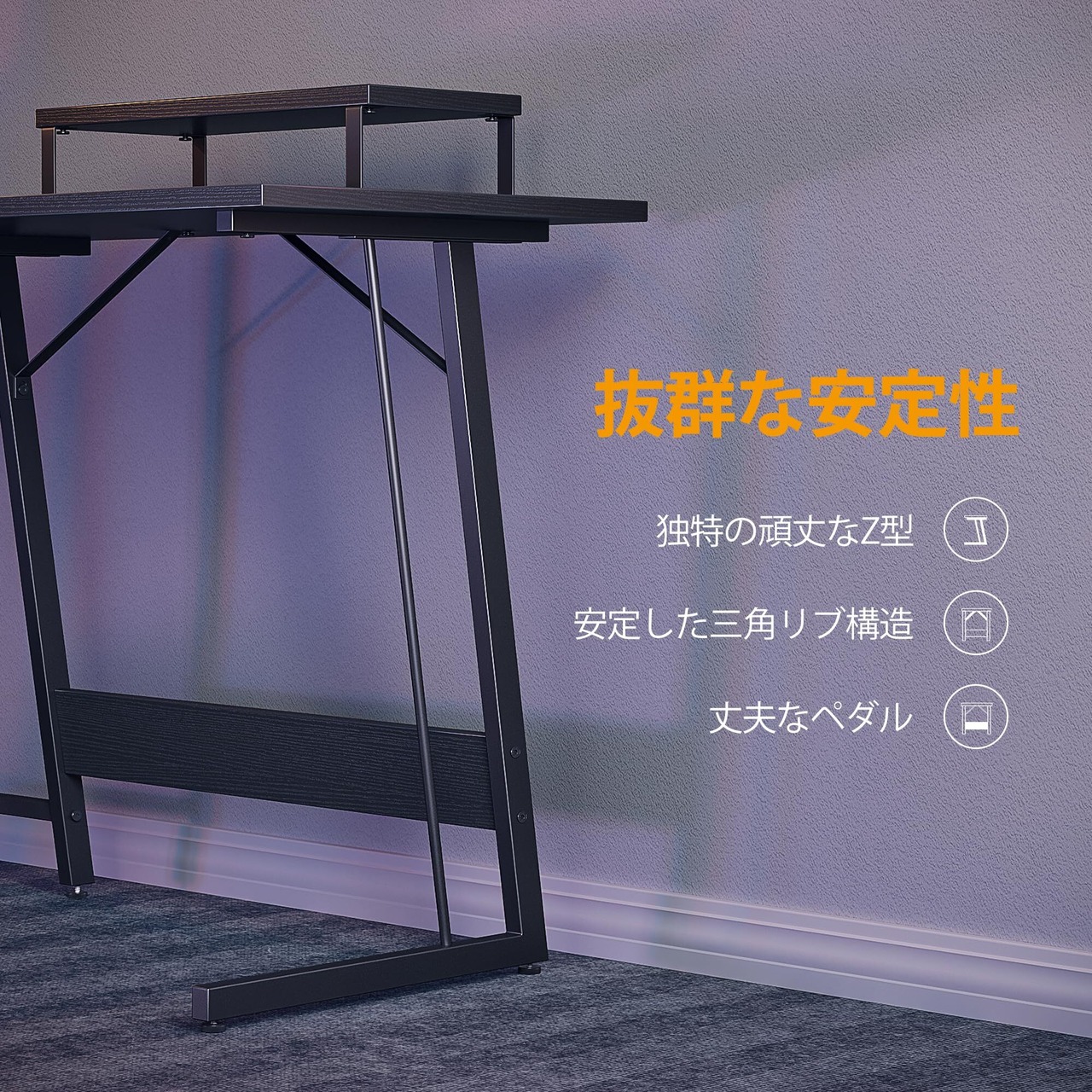 l字デスク パソコンデスク ゲーミングデスク L字 コーナー オフィスデスク ワークデスク 作業机 モニター台付き 省スペース 机pcデスク 在宅勤務 幅120*120cm ブラック