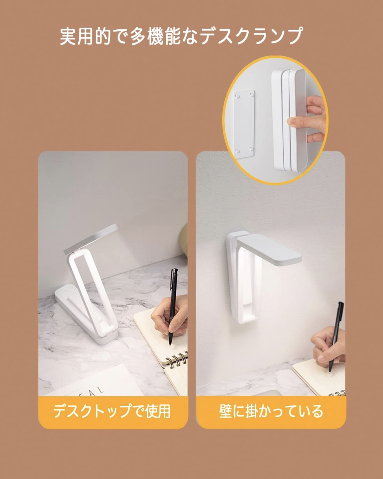 デスクライト 折りたたみ式 テーブルランプ 目に優しい スタンドライト 卓上ライト 吊るすことができます 多機能 タッチセンサー コードレス 充電式 電気スタンド 読書灯 無段階調光 軽量 省エネ 勉強 デスクワーク ledスタンド 読書 ライト ホワイト 2000mAh
