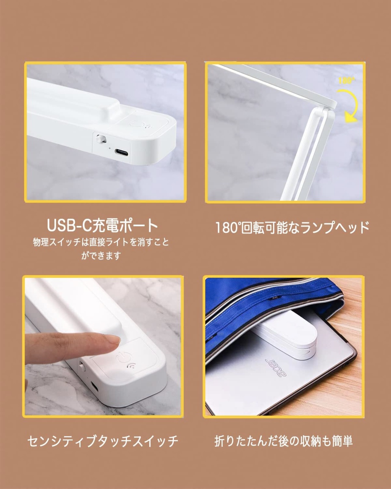【USBタッチ読書灯】USB-C充電方式により、デスクランプの充電が速くなるだけでなく、お持ちの他の充電ケーブルで充電できるので便利です。 タッチスイッチを短く押すと、光の色を調整できます - 白色光、暖かい光、暖かい白色光。 スイッチを長押しして明るさを調整します。小型、ワイヤレス、読書に最適。スタンドライトにはメモリ機能もあり、最後の使用モードを保存できます。