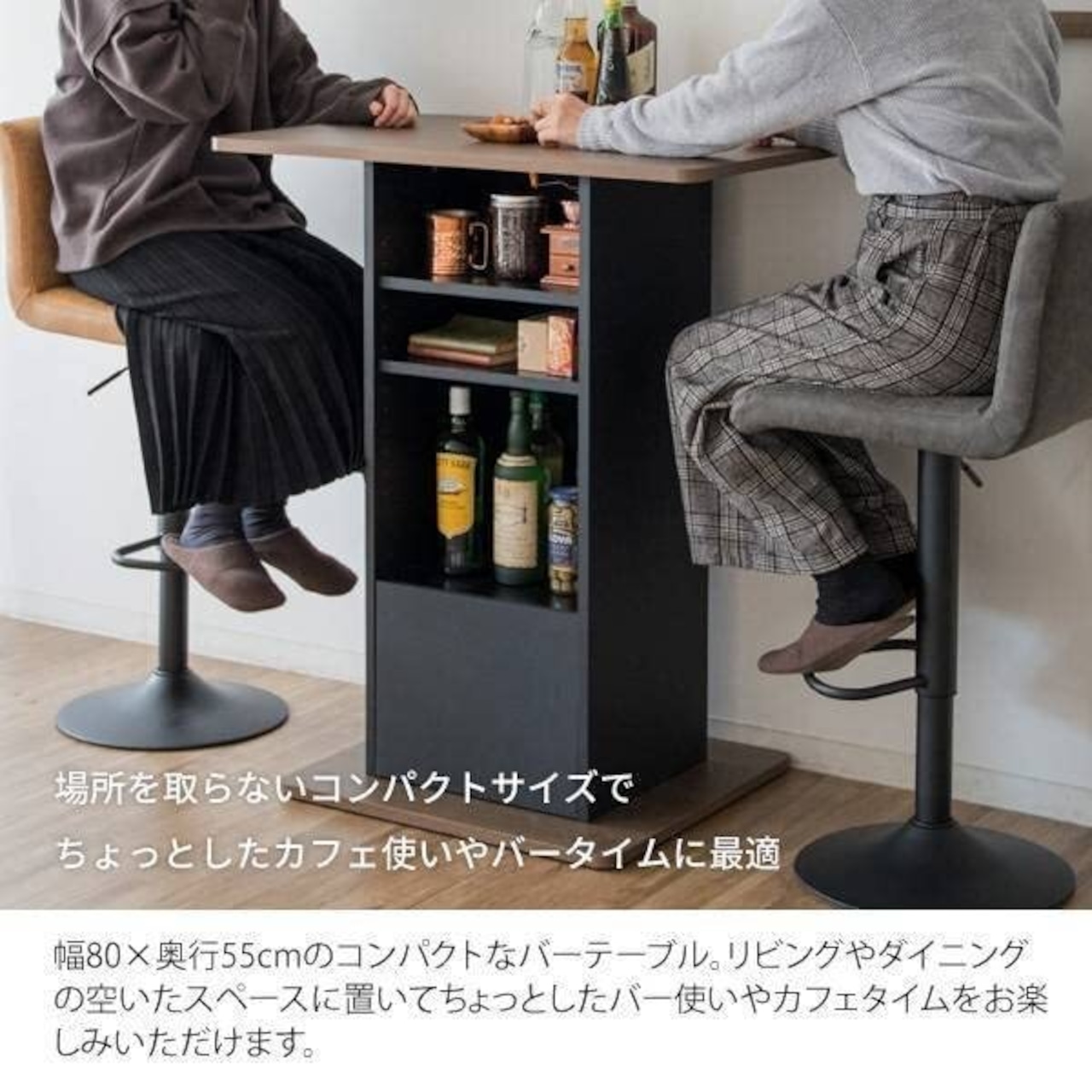 ちょっとしたカフェ使いやバータイムにピッタリなバーテーブル『Baron(バロン)』。 省スペースなコンパクトサイズでリビングやダイニングの空いた空間に置けます。 天板下には棚の位置を自由に変更できるオープンラックと、食品などが入れられる引き出しがありバーテーブルで使うものを色々収納できて使い勝手もバツグン。 スタイリッシュなツートンデザインはブラウン×ブラック、ナチュラル×ホワイトの2パターンをご用意。お好みやお部屋の雰囲気でお選びいただけます。 商品スペック 商品名 コンパクトバーテーブル Baron(バロン) サイズ 幅85×奥行き55×高さ100cm 材質 合成樹脂化粧合板、プリント紙化粧繊維板 耐荷重 天板:15kg、棚板:各5kg、引き出し:5kg 備考 組立式(約45分)、可動棚2枚付き
