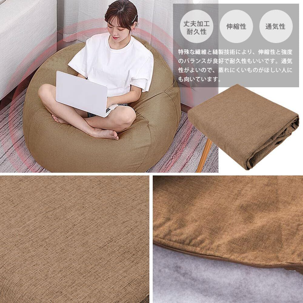ビーズクッションカバー カバーのみ 人をダメにするクッションカバー ポケット付き カバー取り外し 洗濯可能 付け替えカバー おしゃれ 無地 北欧風 四季適用 座布団カバー 多機能(ブラウン 85*100cm)