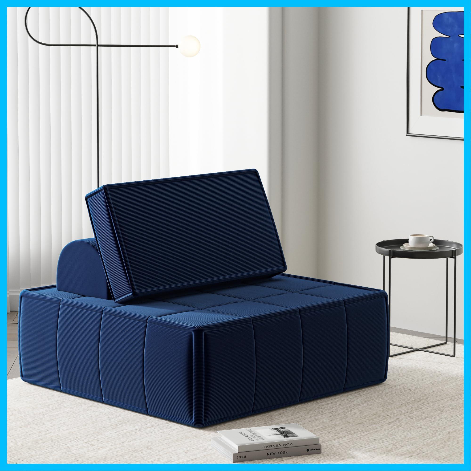 PurrJoys 座椅子ソファ 1人掛け 簡易ベッド モジュール式ローソファ クッション2点付き フロアチェア コーデュロイ素材 小型・多機能デザイン リビング・和室対応, 幅90×奥行90×高さ38/58cm