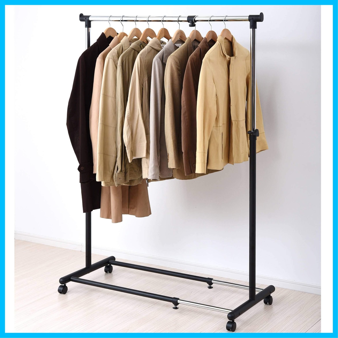【在庫セール】山善(YAMAZEN) ハンガーラック シングル 耐荷重30kg 幅81-122×奥行49×高さ111-184cm 幅・高さ伸縮調整可 マットブラック YBH-SS(MBK)