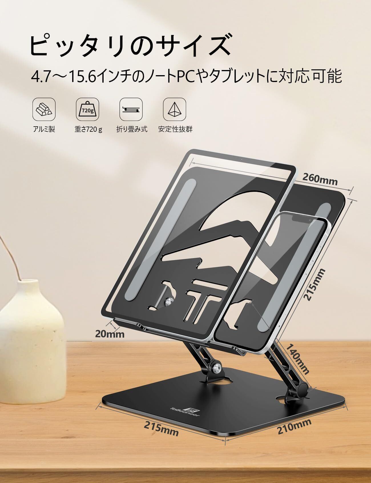 ツビワ(ToBeoneer) ノートパソコンスタンド PCスタンド タブレットスタンド laptop stand 液タブホルダー 折り畳み式 卓上 高さ角度調整 人間工学 姿勢改善 在宅ワーク アルミ製 ZOOM会議 Macbook,iPad,15.6インチまでのノートPCやタブレットに対応 (黒)