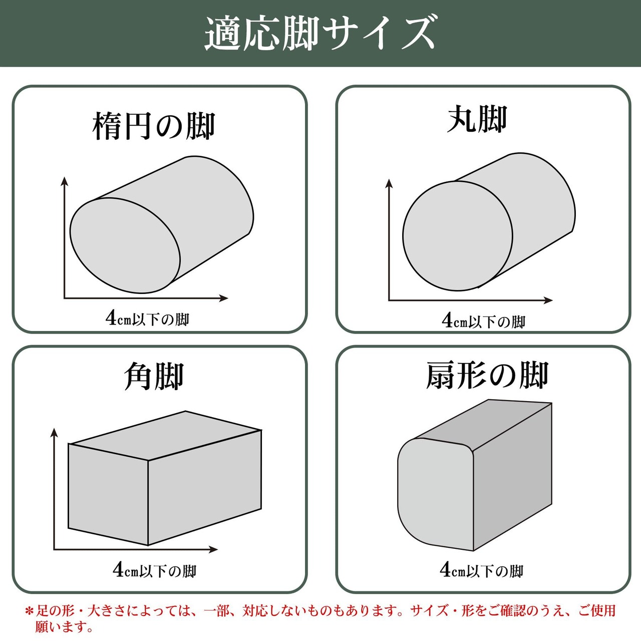 【使用場所】テーブル、椅子、ベッド、ソファー、こたつ、タンスなど、幅広い家具に使用できます。家具だけでなく洗濯機や冷蔵庫など大型家電でも使用可能です(耐荷重1000kg)。