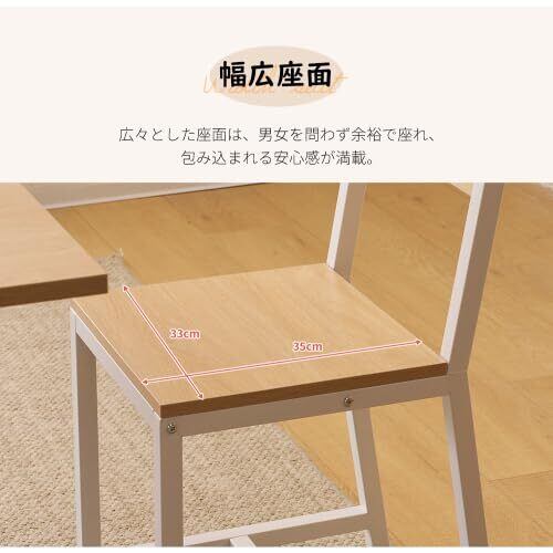 【快適なデスク下スペース】 テーブルの高さは75.5cmで、足元にゆとりを持たせている。椅子の高さは42cmで、適度な高低差が快適な食事体験を提供する。広々とした座面は、男女を問わず余裕で座れ、包み込まれる安心感が満載。 【コンパクトデザイン×統一感で空間を進化】テーブルとデザイン統一のチェア2脚がセットに。コンパクト設計でリビングが広く感じられ、統一感のある高級インテリア空間に。たたむとコンパクトに収納でき、友人との食事も一人仕事もシーンに合わせて快適に。