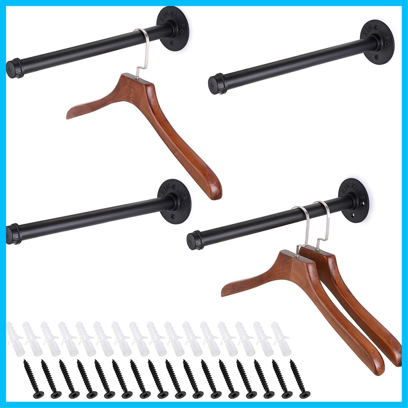 Sumnacon パイプ型 ウォールハンガー 壁掛けラック 衣類ハンガーラック 服掛けラック タオル掛け 壁 ネジ 焼付け塗装 錆びにくい アンティーク調 寝室 浴室 玄関 ベランダ 物干し ブラック 35cm 4本セット