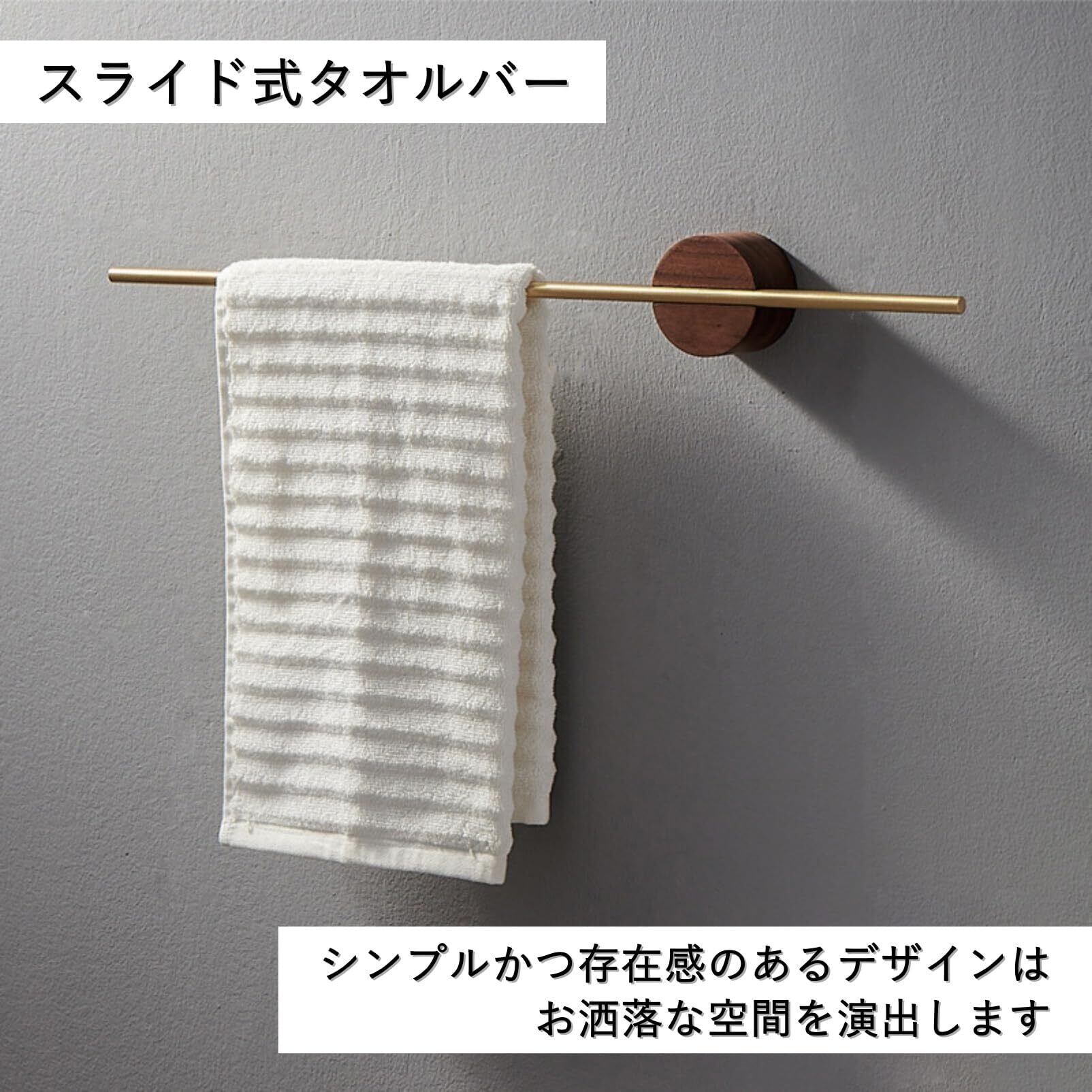 このタオルバーは、支持部がスライド式で、掛けるものの大きさに合わせて調整できます。可動式の支持部は左右にスライドすることができ、使いやすさを追求しています。