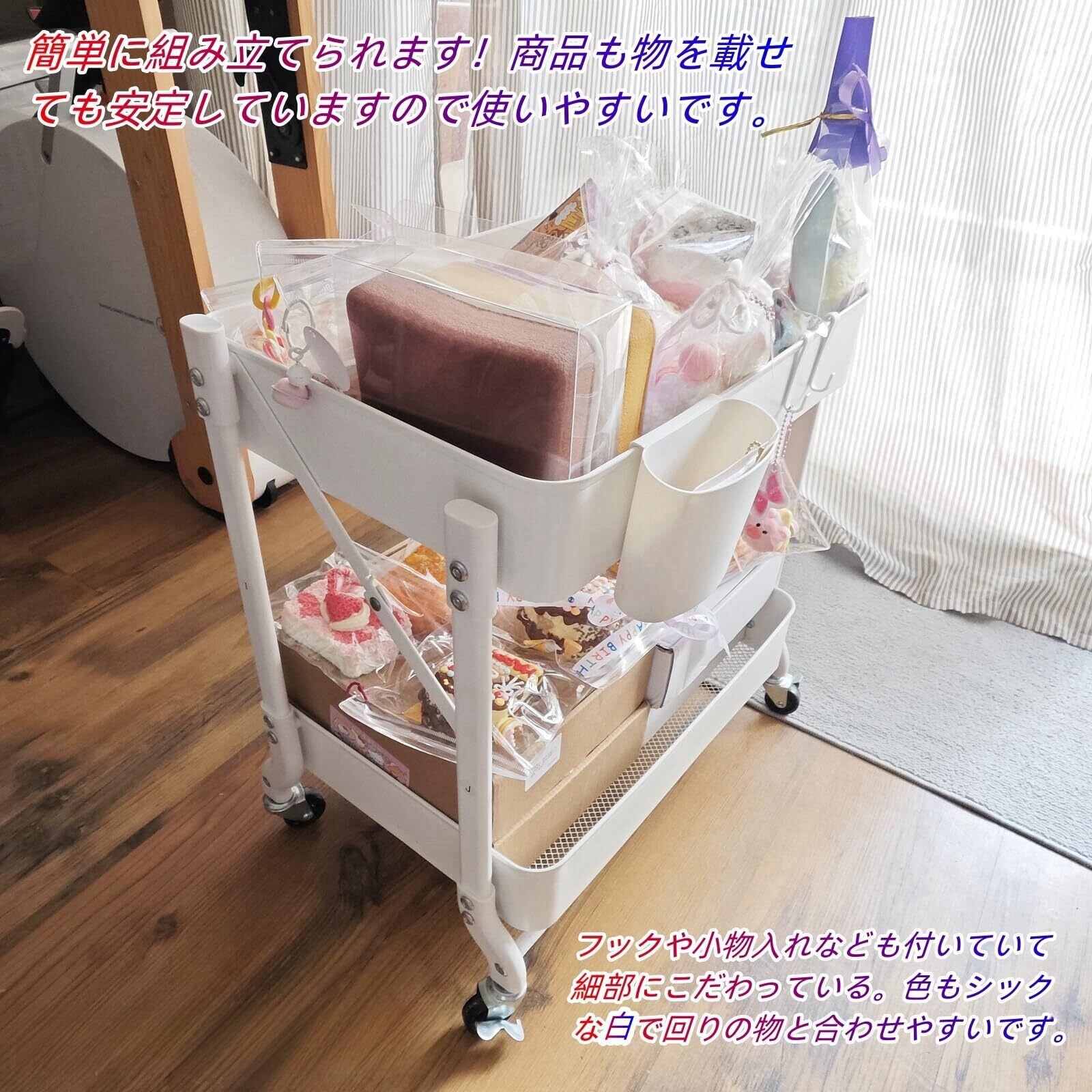 【在庫処分】キッチンワゴン 折り畳み 2段タイプ 耐荷重40KG 幅46cm×奥行30cm×高さ51cm シンプルさ 収納ワゴン スチール製ボデイ キャスター付き スムース移動 吊り下げカップとフック小物収納 組立商品 (ホワイト, 折畳2段)