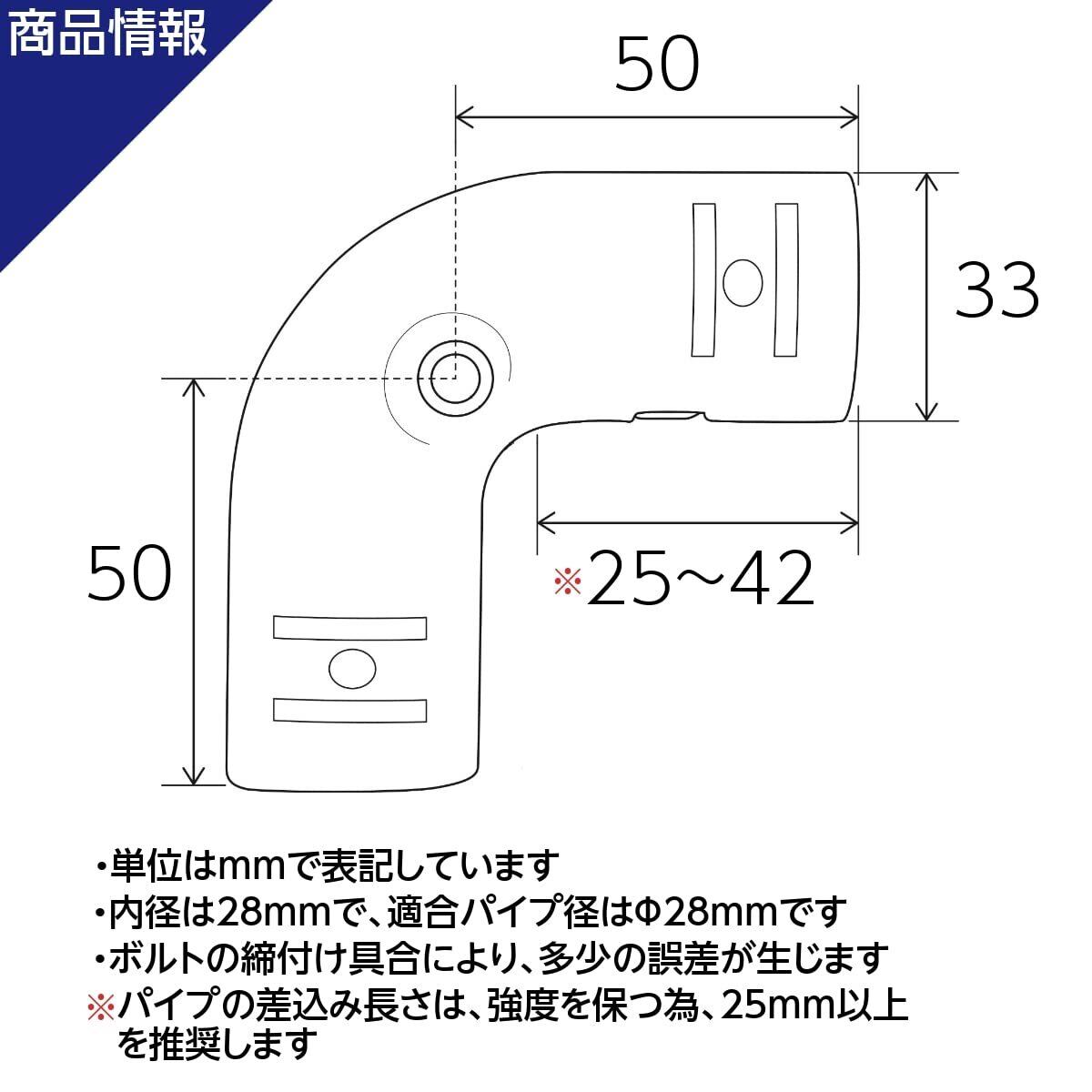メタルジョイント Φ28mm 直径28mmmパイプ用 ブランド名:NTY 材質:鉄製 付属:ボルト M6 25mm・ナット M6 色:ブラック