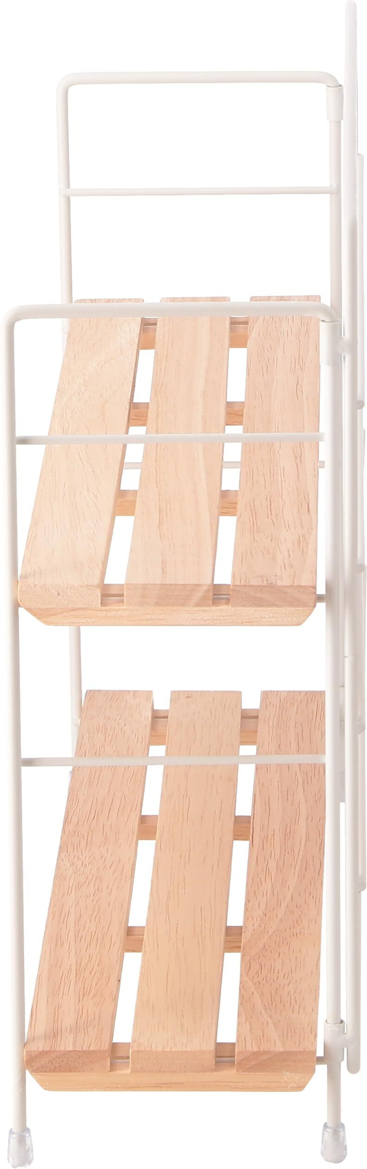 不二貿易 ミニシェルフ 収納棚 幅34.5×奥行10.5×高さ29.5cm ホワイト×ナチュラル インテリアラック 折りたたみ 55005