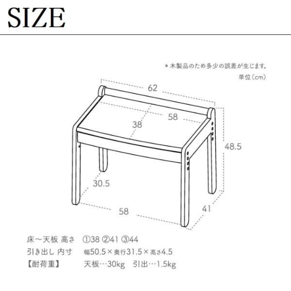 耐荷重:本天板/30kg、抽斗/1.5kg