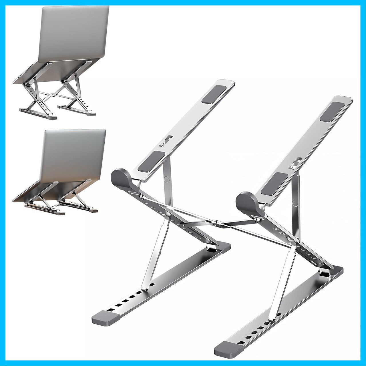 【特価セール】ノートパソコンスタンド 高さと角度の調整 折りたたみ式 滑り止め 持ち運び アルミ合金製 pcスタンド 収納袋付き シルバー