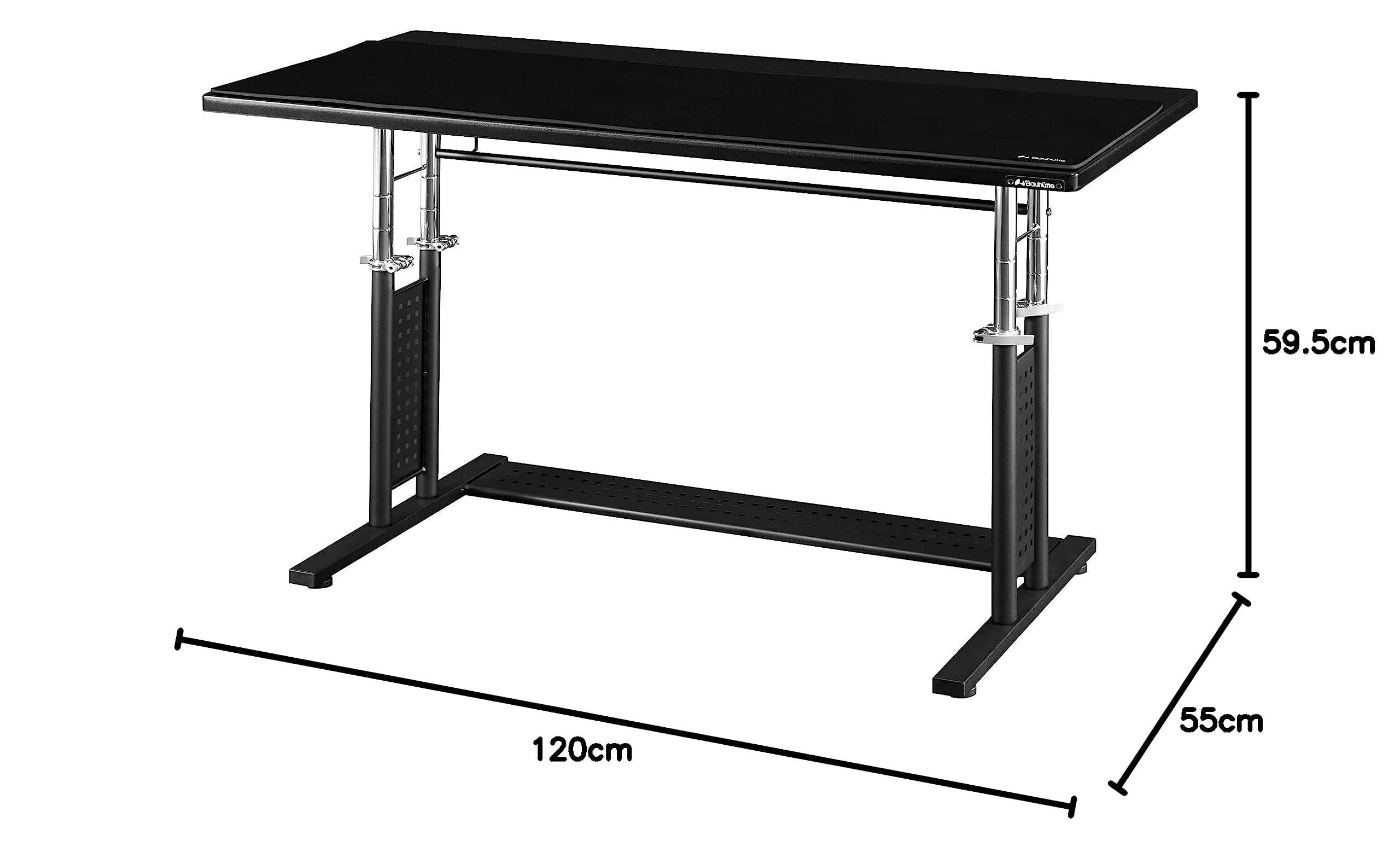 Bauhutte ( バウヒュッテ )ゲーミングデスクHD 耐荷重100kg 無段階昇降 ( 幅 120 × 奥行 55 高さ 59.5~81 cm ) 身長やプレイスタイルに合わせて高さ調節 昇降デスク 大判マウスパッド付属 BHD-1200HDM-BK