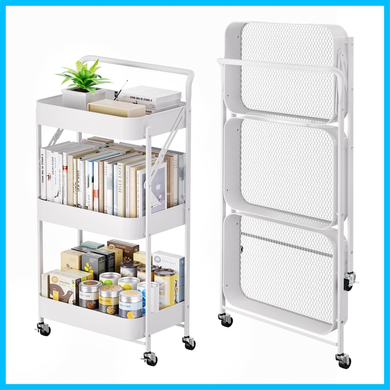 【折り畳み式ラック】この折りたたみ式キッチンワゴンは、一般的な収納ワゴンとは異なり、組み立てが不要で、手間なく使用できます。キャスターとハンドルを取り付けるだけで、すぐにお使いいただけます。使用しない時には簡単に折りたたんで、狭いスペースにも収納可能。空間を無駄にせず、効率的に利用できる非常に便利なスチールラックです。