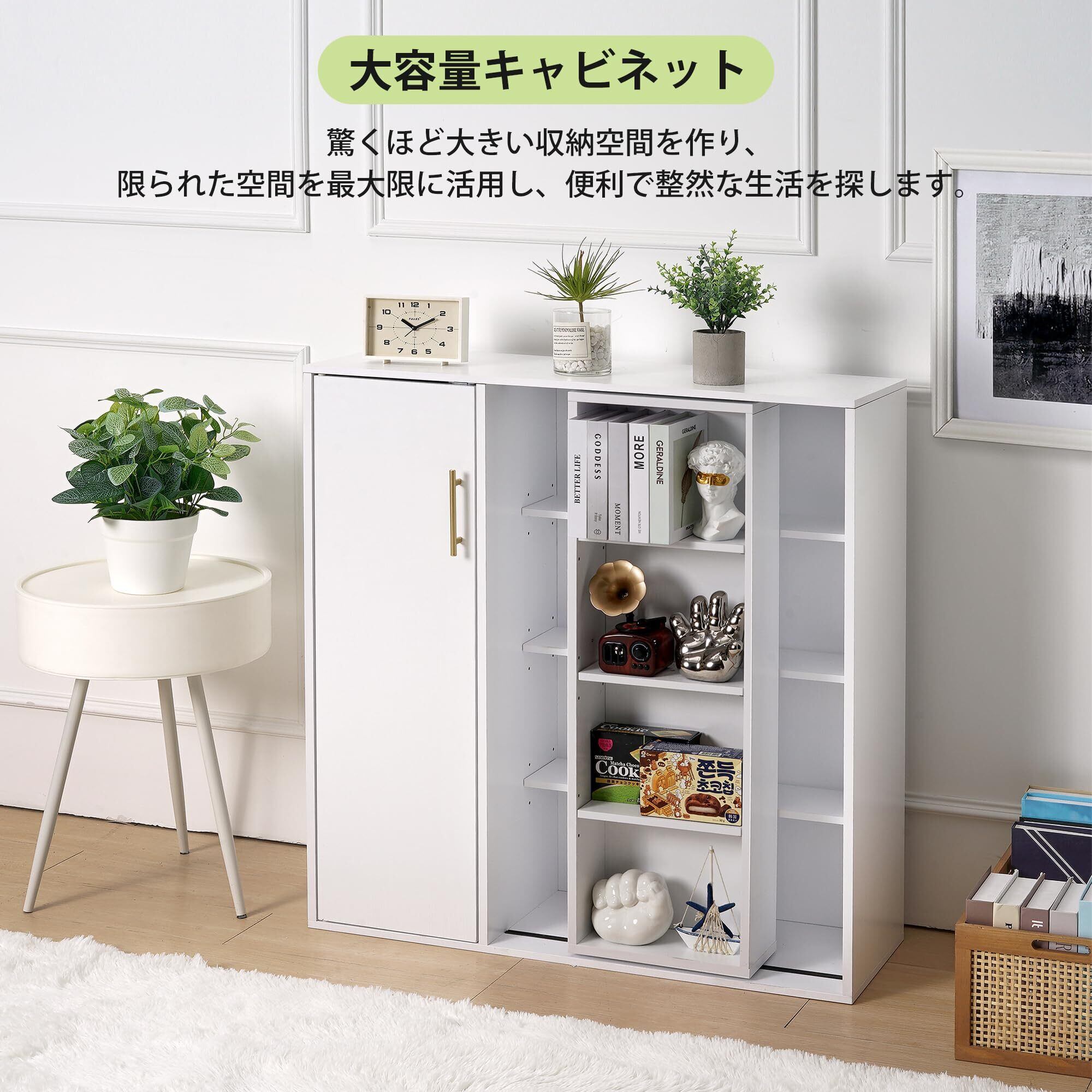 【数量限定】VECELO キャビネット スライド式 4段 サイドボード 幅60X奥行30X高さ90cm 本棚 大容量 取っ手付き 扉付き オープンラック 組立品 漫画 絵本棚 コミックラック キャビネット 棚板可動 木製 寢室 CD収納 飾り棚 置物棚 本棚 キッチン 食器棚 キッチン収納 ホワイト