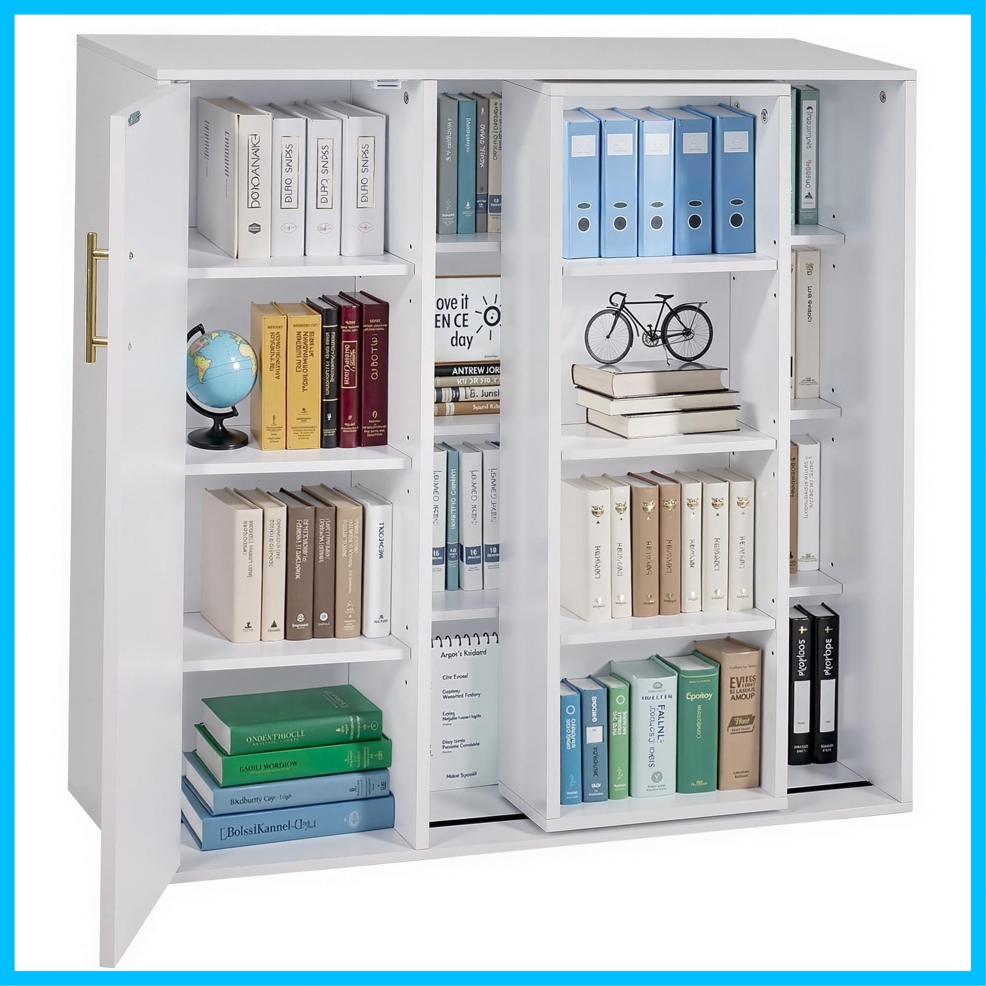 【4段ラック・収納力抜群】このキャビネットは4段の構造で、各段の高さが大きなので、雑誌や教科書などサイズの大きいな本を多く収納できます。そのほか、扉にも4段のラック付き、収納空間をより広め、同じサイズのキャビネットより収納力が優れています。
