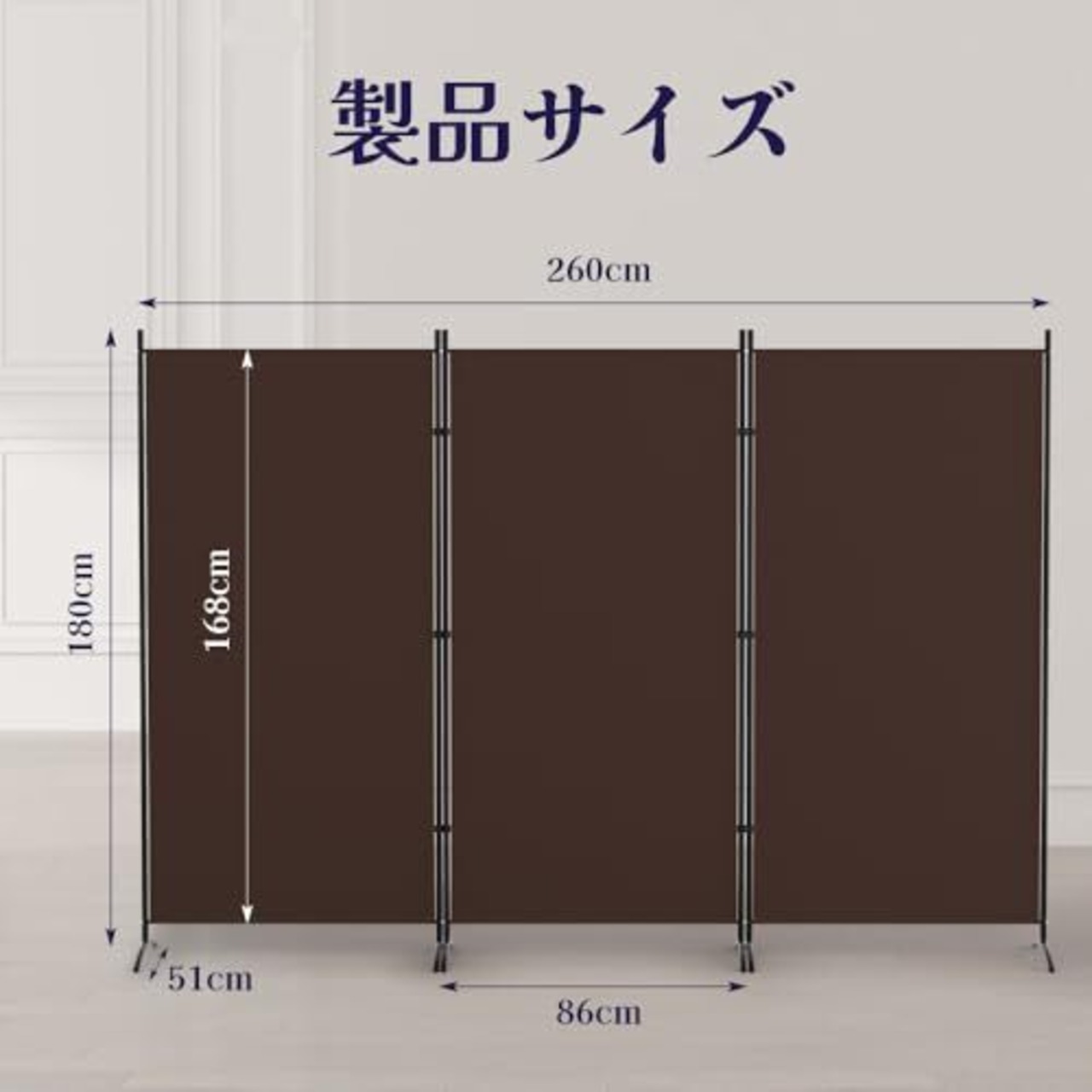 【組み立て簡単】 全体サイズ:高さ180cm×幅260cm。カラー:ブラウン。おしゃれ衝立は防水生地でできており、お手入れも簡単です。取り付けも簡単で、1人で20分以内に部屋パーテーションを組み立てることができる。屏風についてご不明な点がございましたら、お気軽にお問い合わせください、はできるだけ早く問題を解決するお手伝いをいたします。