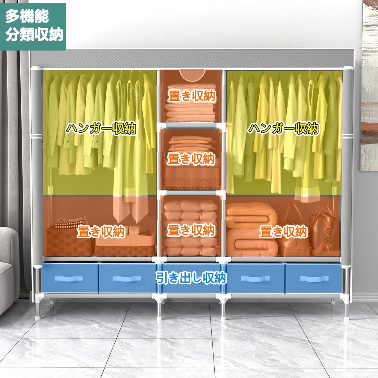 【組み立てが簡単】:クローゼットの構造はシンプルで、ネジや工具を使わずに手作業で簡単に取り付けることができます。インストールなどの問題が発生した場合は、お気軽にご連絡ください。私達はします日本の電子マニュアルまたはその他のヘルプを提供します。