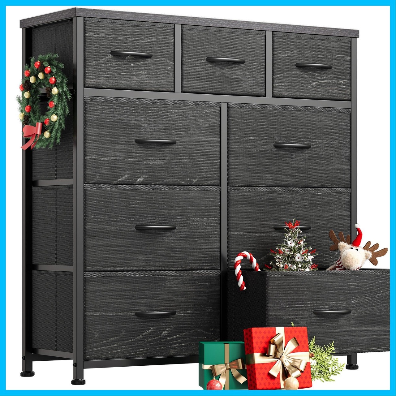 ①分類別収納:チェストは9つの引き出しもあり、収納力抜群です。下部の6つの大きな引き出しは、毛布、スカーフ、靴下、子供のおもちゃや衣類などをたっぷり収納できます。上部の3つの小さい引き出しは、身に着ける衣類や靴下などを収納できます。