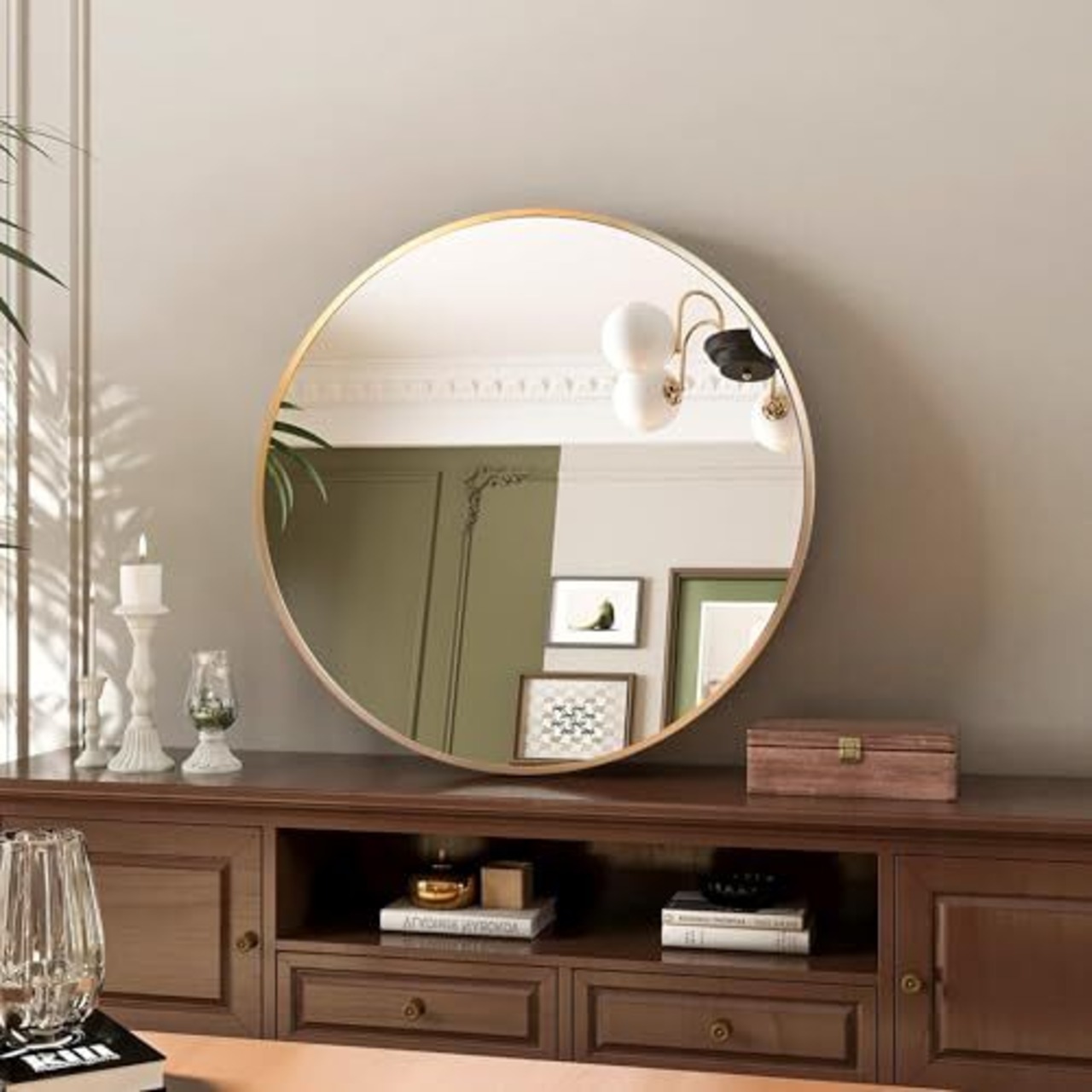 【在庫処分】鏡 壁掛けミラー アルミフレーム 壁掛け鏡 バスルームミラー 丸型ミラー 化粧鏡 リビング ウォールミラー 玄関 洗面 トイレ 円形(ゴールド, 直径30cm)