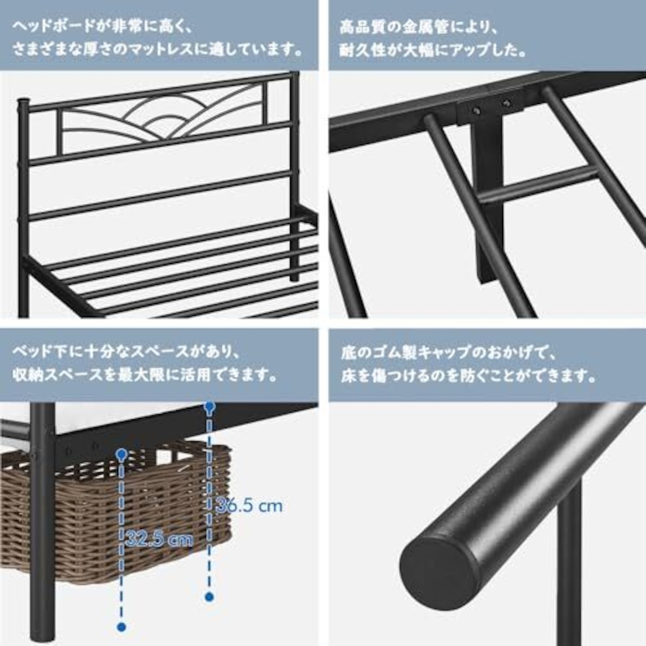 【ベッド下収納】ベッド下に十分な収納スペース(高さ32.5cm)があるため、このスチールベッドはお洋服や寝具を収納したら、靴や雑貨などを置いても余裕です。お手入れする時にベッドの下にロボット掃除機が簡単に入れて掃除も便利。