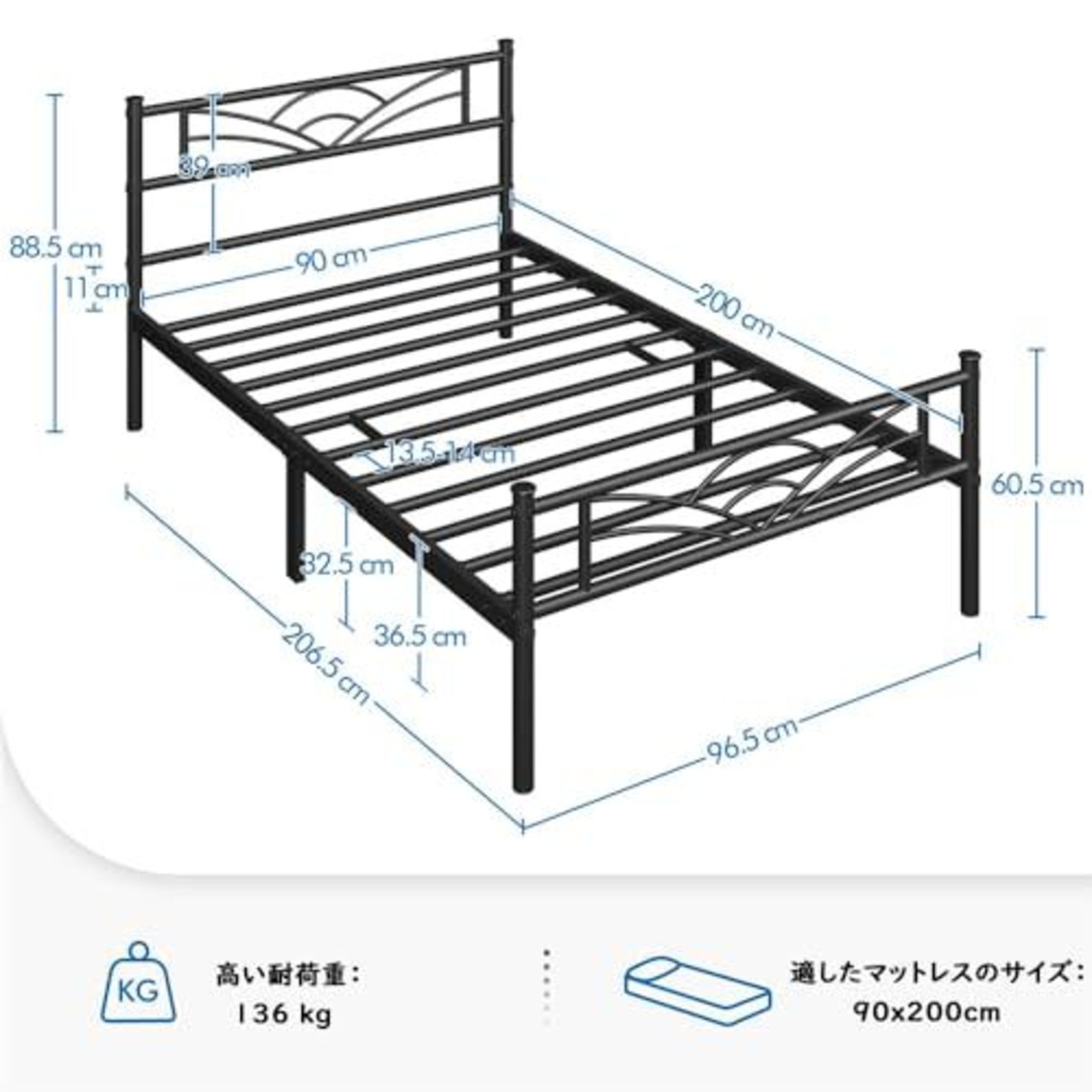 Yaheetech ベッドフレーム シングルベッド 90x200 スチールベッド すのこベッド ヘッドボード付き フットボード付き ベッド下収納 ロボット掃除機OK カビない きしみにくい 通気性よい 丈夫安定 静音設計 簡単組立 工具付き 一人暮らし シングル 耐荷重136kg 高さ36.5-88.5cm(ブラック)