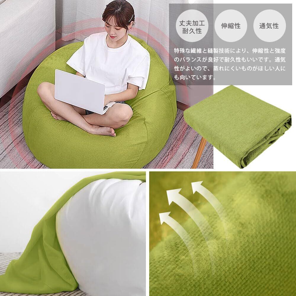 ビーズクッションカバー カバーのみ 人をダメにするクッションカバー ポケット付き カバー取り外し 洗濯可能 付け替えカバー おしゃれ 無地 北欧風 四季適用 座布団カバー 多機能(グリーン 85*100cm)