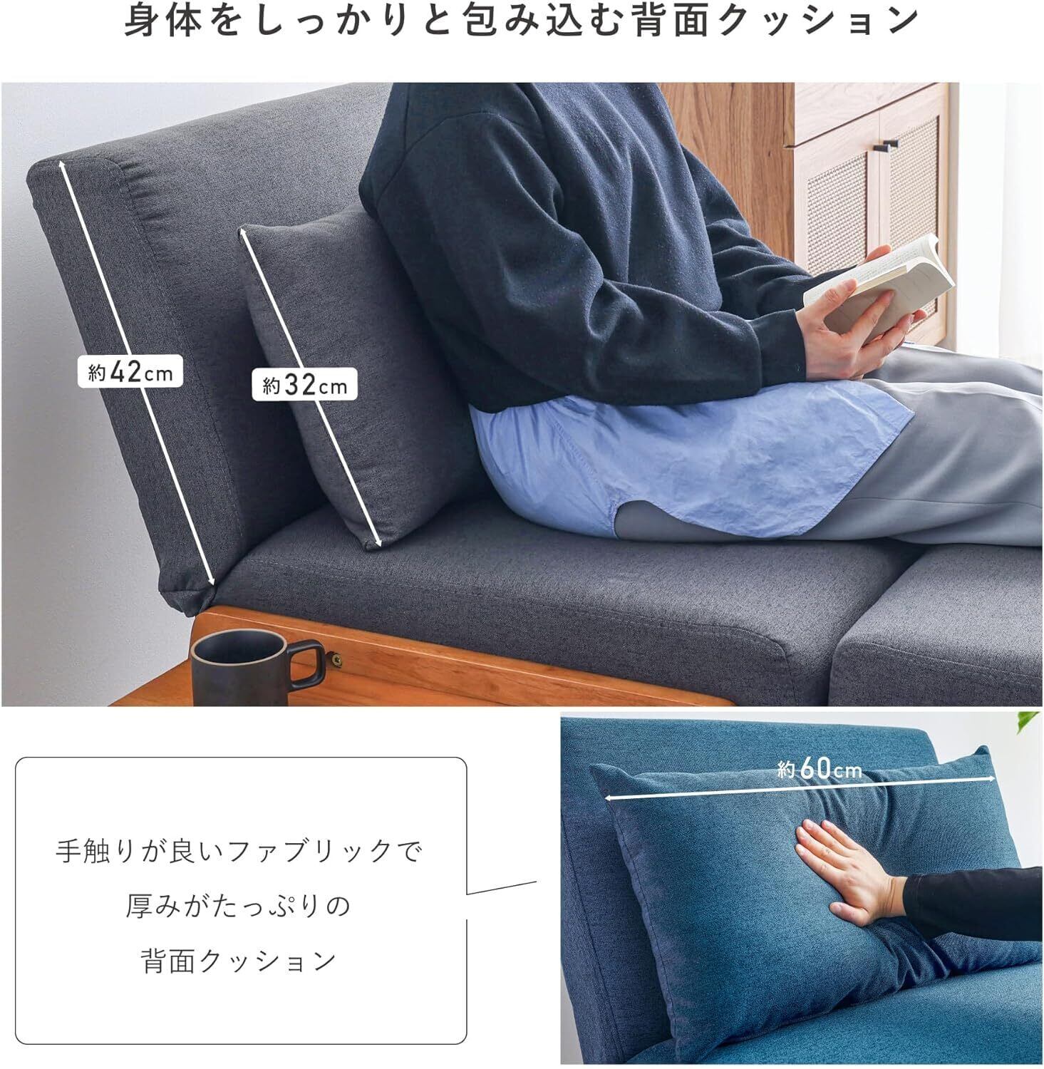 【簡単にベッドに早変わり】背もたれを倒すとベッドとしてお使いいただけます。背もたれの背面から背面足を引き出し、引き出し座面を引っ張ると完成。ベッドへの切り替え方も簡単です。