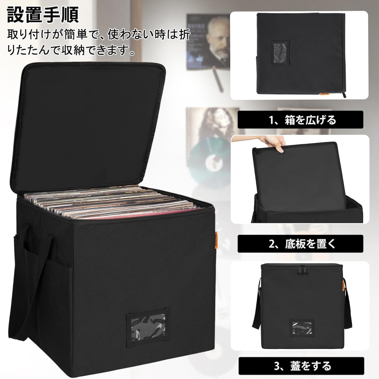 【コンパクト、折りたたみ可能】折りたたむと、スペースを取らずに便利に収納できます。使わないときは、レコード収納ケースをたたむだけで収納収納を簡単に実現したり、複数のケースをシームレスに積み重ねたりすることで、すべてをキレイに保つ良い方法です!