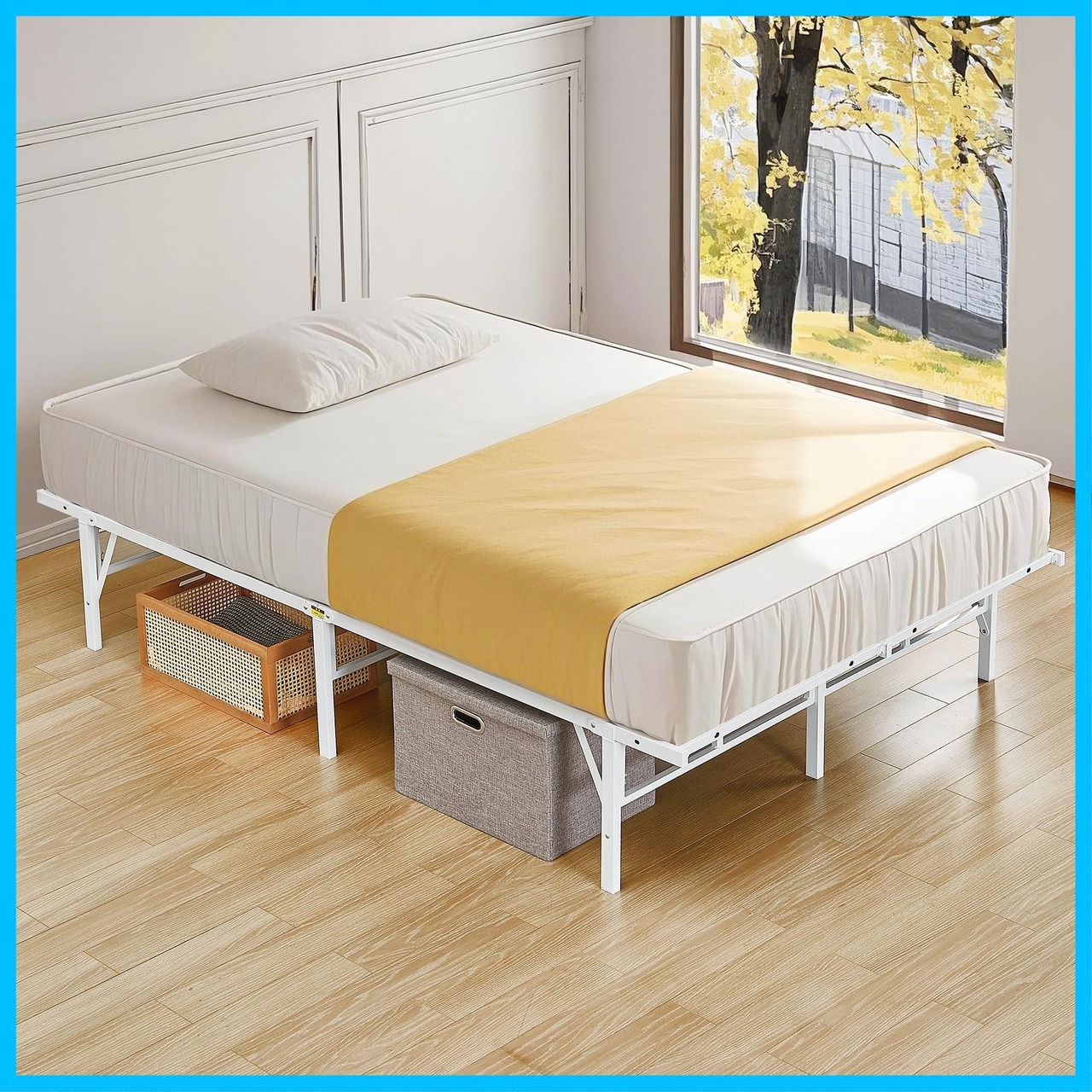 【広々としたベッド下収納スペース】ベッドフレームの下には十分なスペースがあり、収納ボックスや収納ケース、靴箱などを簡単に収納できるため、寝室がよりすっきりと整理され、スペースを有効活用できます。