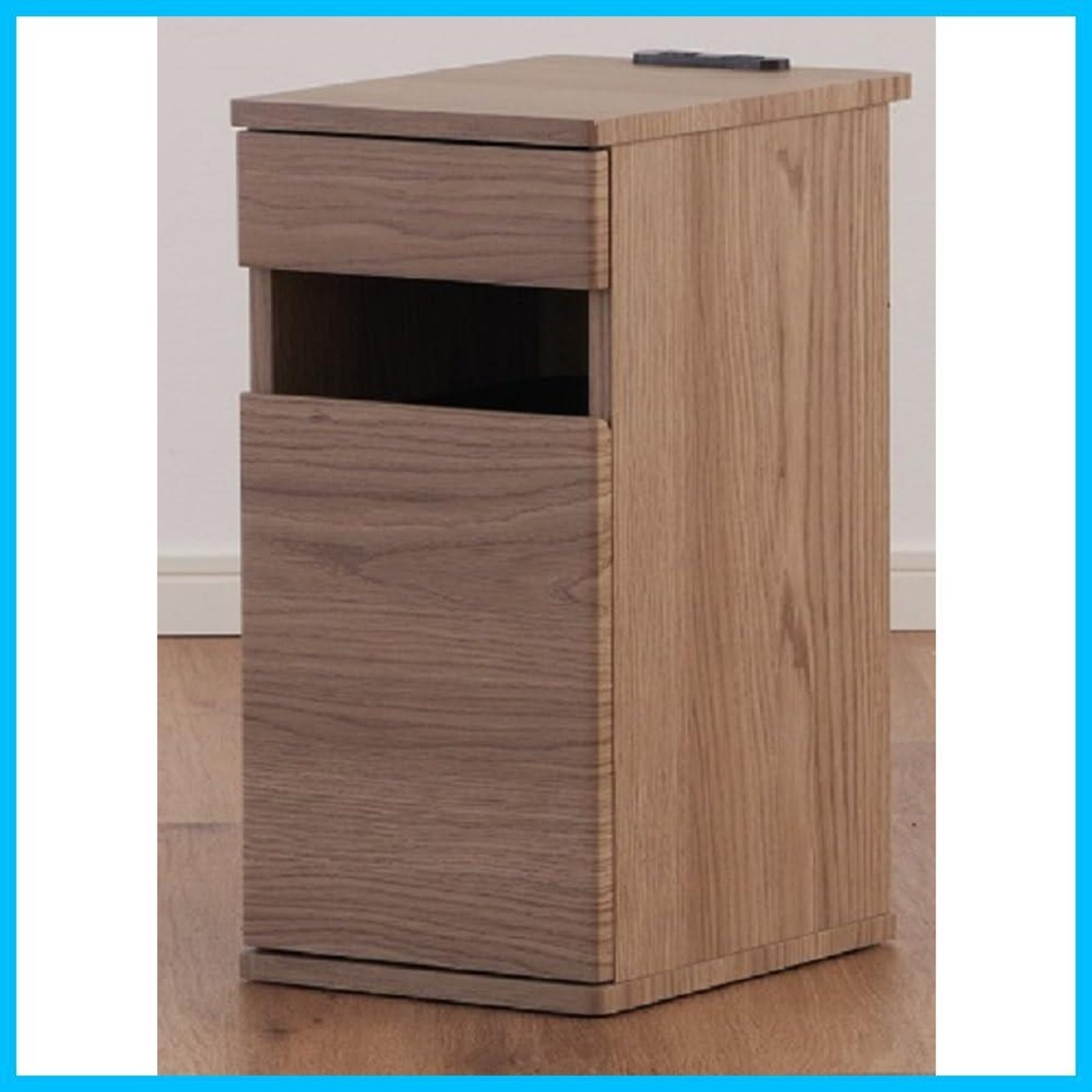 完成品 ごみ箱付き ソフトクローズ扉 ナイトテーブル コンセント付き 幅25 高め サイドテーブル ベッド横 ベッドサイドテーブル 引き出し スリム 木製 スタイリー (GY グレージュ)