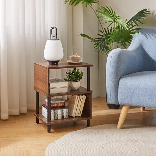 サイドテーブル おしゃれ S字ラック 3段 小さい オープンシェルフ 棚 スリム 本棚 ベッド横 ソファ 寝室 収納棚 アジャスター付 ブラウン/ブラック YD-TM152LW