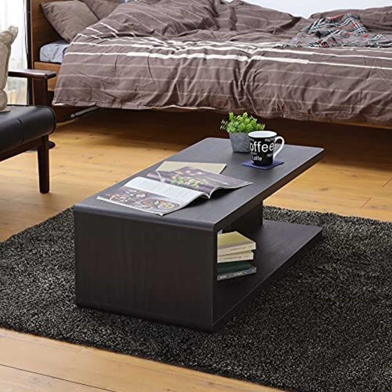 やわらかな曲面とスクエアな形状の、他に類を見ないデザインのキアエッセ2ローテーブル。