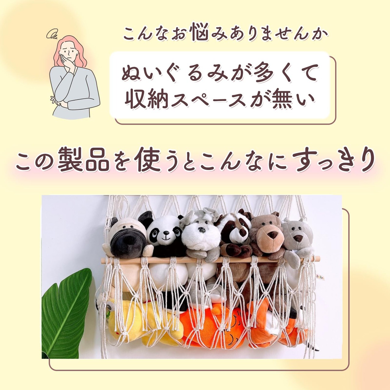 【スペースの有効活用】お部屋に可愛らしいアクセントを加えながら、スペースを有効活用できます。このハンモックは、大量のぬいぐるみを一か所にまとめて収納できます。