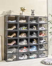シューズボックス 4個セット大容量収納ボックス 磁石開閉扉スニーカーボックス 小物文房具化粧品収納ケース 靴ケース 收纳靴箱 男女兼用シューズケース 玄関靴棚 組立て式 透明扉付き 4個セット クリア×ブラック