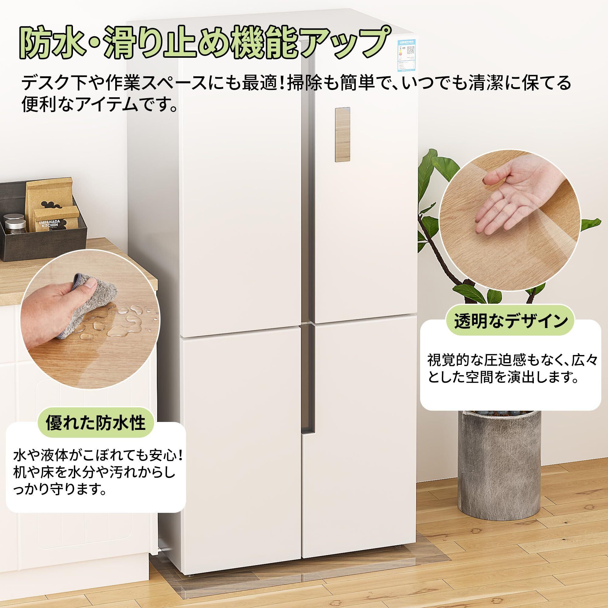 【多用途に対応】 この冷蔵庫マットは冷蔵庫だけでなく、本棚や食卓の下にも使用できる万能なアイテムです。家庭やオフィス、玄関など、さまざまな場所で使用可能です。そして、子供の遊び場など、用途は多岐にわたります。