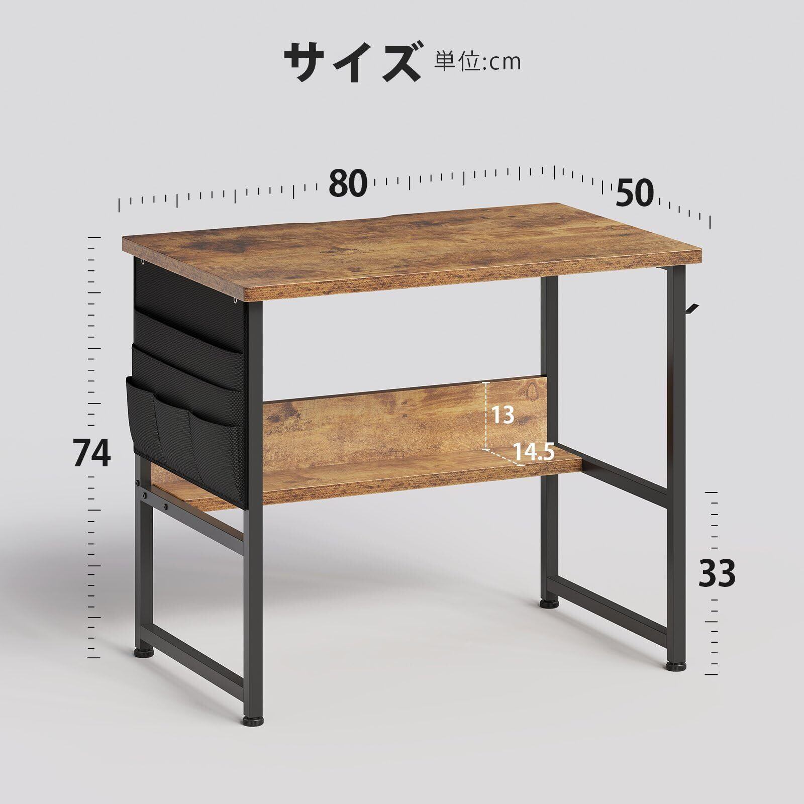 机 pcデスク 勉強机 幅80cm 作業机 収納袋付きパソコンデスク 小さい ワークデスク モニターアーム取付対応 組立簡単 ビンテージ