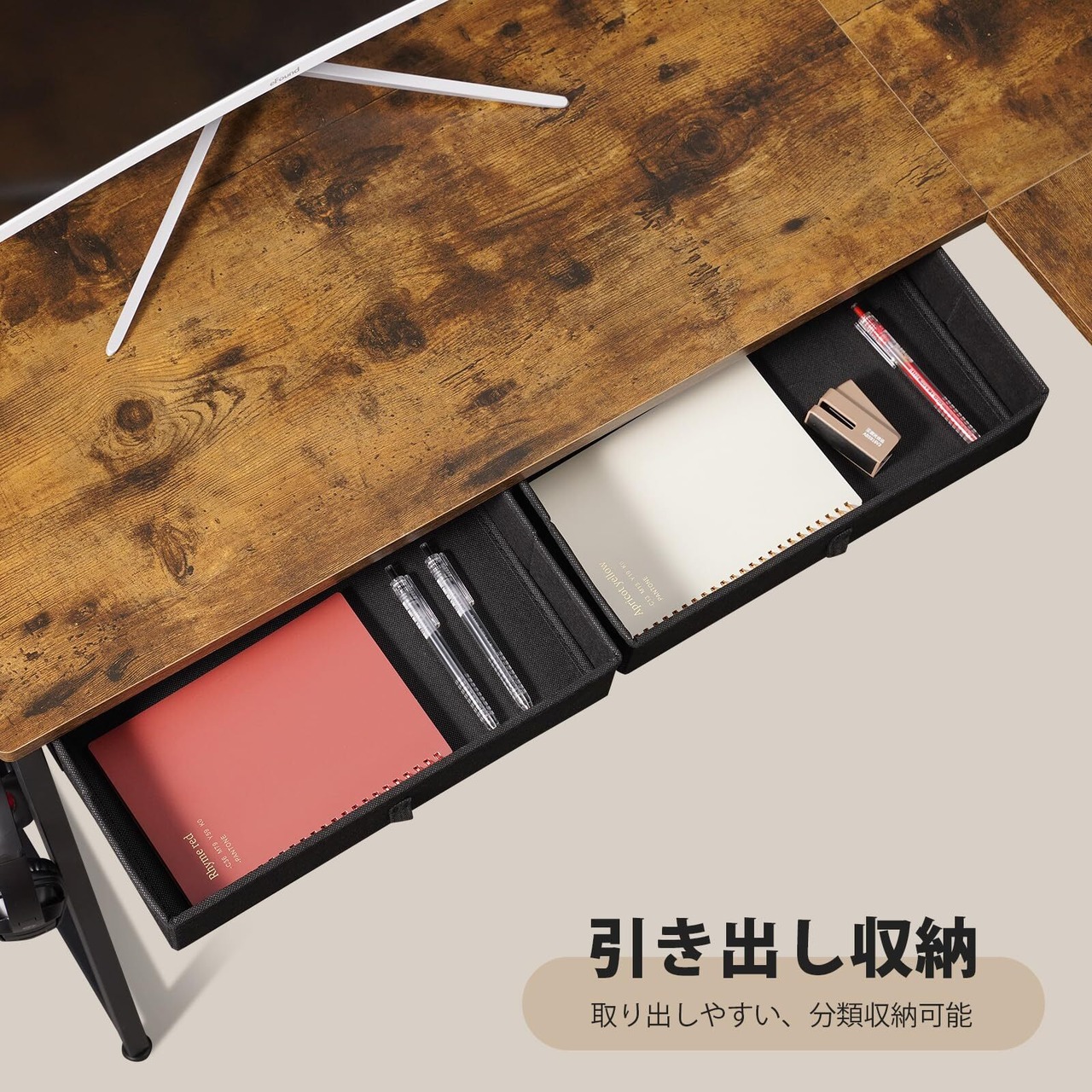 デスク 机 l字デスク机 pcデスク 作業机 125cm x 125cm オフィスデスク ゲーミングデスク パソコンデスク 収納袋付き勉強机 computer desk コーナーデスク 引き出し付きデスク ビンテージ