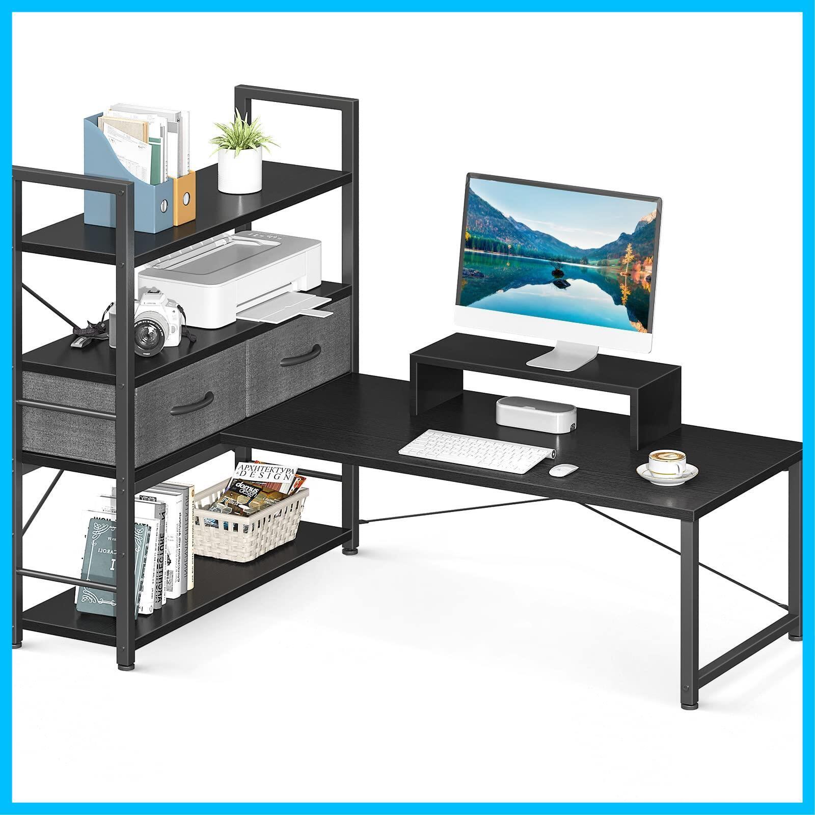 【4段ラック&引き出し付きゲーミングローデスク、見える収納】シェルフは間取りや利き手に基づいて左右どちらでも設置OK。棚板と引き出しの位置を用途に応じて気軽に調整可能です。小物を便利に収納できる引き出しを中間から外して足元に設置すると、中間は大きいスペースに変身。PCケースなど大きなものは、気軽に収納できます。自由度が高いオープンラックで、アニメグッズ、小物を飾ってもおしゃれ。