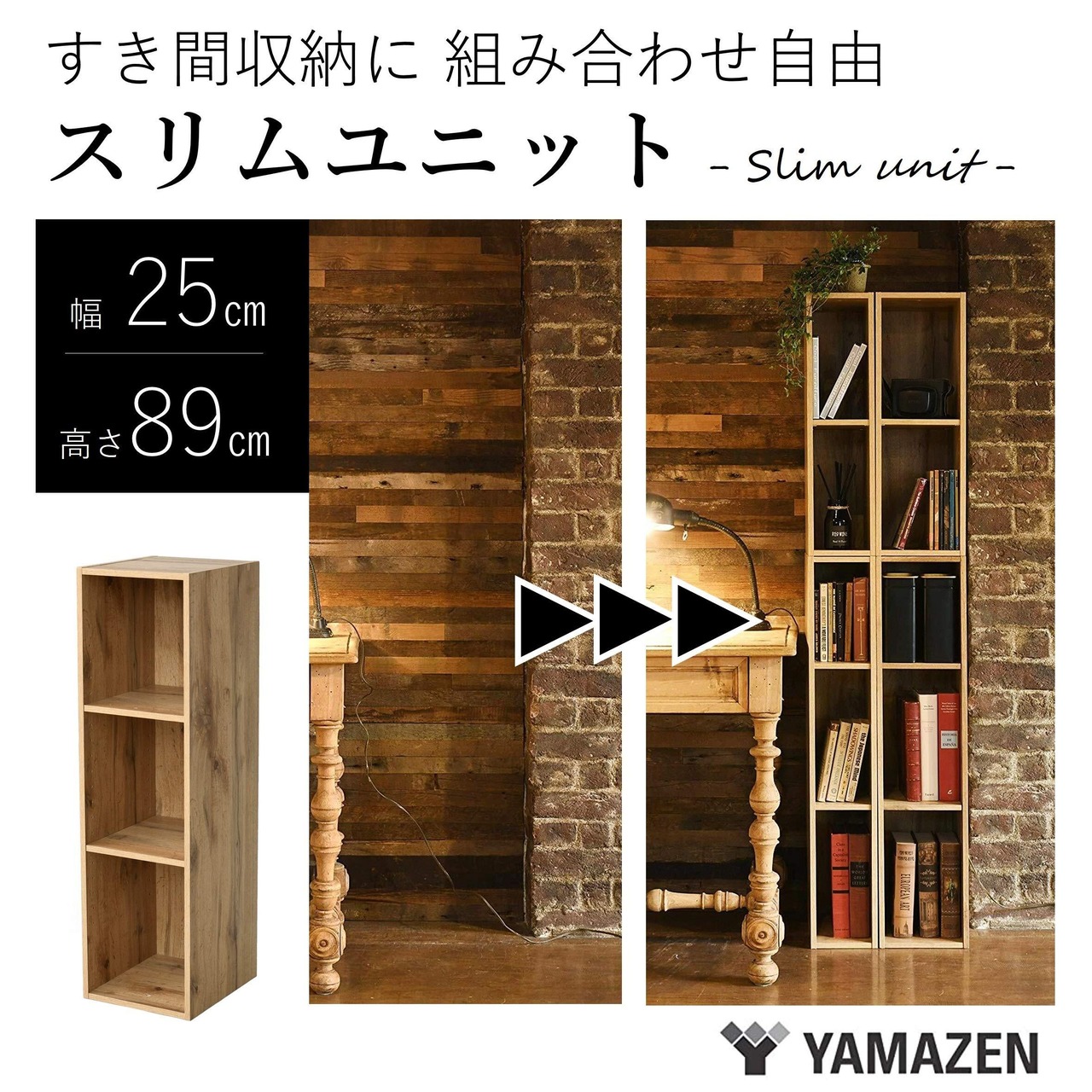 山善(YAMAZEN) ラック (スリム) 幅25㎝ 3段 A4対応 隙間収納 (棚板の高さが変えられる/6段まで積み重ねられる) 棚 スリムユニット 組立品 (オーク) SLU-90253(OAK)